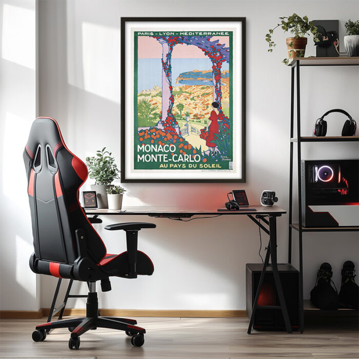 This 1922 poster by Roger Broders promotes Monte-Carlo, Monaco. A high-society Mediterranean destination. A timeless classic from one of France’s premier travel poster artists.