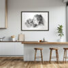 This friendship poster captures a joyful moment between woman and dog, nuzzling affectionately in a black and white drawing marked Best Friends. For those who cherish loyalty and love. Add this timeless piece to your decor. Prints available in A1, A2, A3 and A4 sizes.