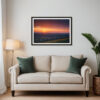 This nature and landscape print captures a sunset scene over fields, a small village, and distant mountains beneath a dramatic sky. For sunset seekers and landscape fans. Let rich rural beauty grace your wall. Prints available in A1, A2, A3 and A4 sizes.