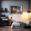 This fantasy art poster depicts two glowing orange butterflies — fluttering through a dusky forest bathed in golden light. For admirers of enchanted nature and serene scenes. Bring gentle flight and dreamlike charm to your wall. Prints available in A1, A2, A3 and A4 sizes.