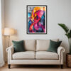 This lively abstract art poster features intersecting curves and geometric shapes in a vibrant palette of red, orange, yellow, purple, blue, and grey. For those who enjoy dynamic and colourful wall art. Let this vibrant piece energise your space. Prints available in A1, A2, A3 and A4 sizes.