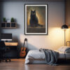 This Halloween vintage poster presents a sleek black cat with piercing yellow eyes — perched beneath a soft, glowing backdrop. For admirers of feline mystique and Halloween lore. Bring midnight allure to your wall. Prints available in A1, A2, A3 and A4 sizes.