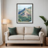 This poster print captures a rocky, green-clad hill rising above water, with trees scattered across its slopes beneath an open sky. For those drawn to peaceful hilltop scenes. Add this tranquil landscape to your wall. Prints available in A1, A2, A3 and A4 sizes.