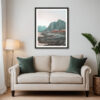 This poster print captures red cabins on rocky shore near Leknes, Norway, with towering peaks rising beneath a pale Nordic sky. For those drawn to rugged coastal scenes. Add the magic of Norway’s north to your wall. Prints available in A1, A2, A3 and A4 sizes.