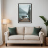 This nature and landscape print captures a wooden rowboat floating next to a rustic dock on a misty lake, encircled by pine trees and mountains. For adventurers and lovers of wild places. Let alpine serenity drift onto your wall. Prints available in A1, A2, A3 and A4 sizes.