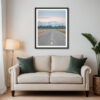 This poster print captures a straight, empty mountain road stretching toward distant snow-covered peaks beneath a moody sky. For seekers of distant horizons. Let the lure of endless roads inspire your wall. Prints available in A1, A2, A3 and A4 sizes.
