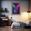 This fantasy art poster depicts a glowing, neon-outlined angel — luminous wings and hair trailing — floating in darkness. For fans of vivid digital fantasy and celestial motifs. Bring a pulse of neon light to your wall. Prints available in A1, A2, A3 and A4 sizes.