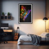 This fantasy art poster presents a butterfly with radiant, neon-hued wings — captured in dazzling contrast against the dark. For those who adore electric colour and nature’s magic. Let a glow of vibrant beauty adorn your wall. Prints available in A1, A2, A3 and A4 sizes.