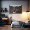 This football poster shows Robin van Persie in Manchester United red, arms outstretched after a goal. For fans of Dutch precision and United glory. Add this memorable scene to your decor. Prints available in A1, A2, A3 and A4 sizes.