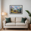 This oil painting wall art features a steam locomotive powering through a lush mountain landscape filled with wildflowers and streams. For fans of timeless railways and scenic vistas. Infuse your space with classic adventure. Prints available in A1, A2, A3 and A4 sizes.