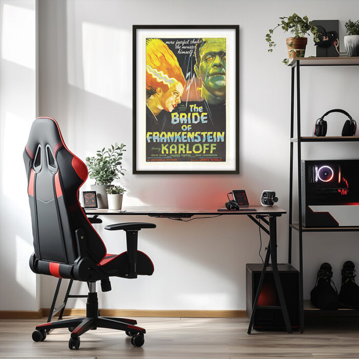 Add a touch of gothic elegance with our dramatic Bride of Frankenstein poster — perfect for fans of classic horror, tragic love, and iconic monsters.
