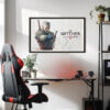 This dynamic gaming poster shows Geralt of Rivia ready for action, sword drawn beneath the text The Witcher: Wild Hunt. For players who love immersive fantasy worlds. Bring this legendary hero to your wall. Prints available in A1, A2, A3 and A4 sizes.