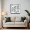 This bird wall art print shows a willow tit balanced on a frosted branch, set against a soft wintry backdrop. For those who cherish tranquil bird imagery. Let this elegant tit scene grace your wall. Prints available in A1, A2, A3 and A4 sizes.