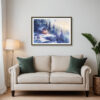 This wall art print offers a serene view of a glowing wooden cabin nestled among snowy pines, with gentle snowfall softening a wintry forest scene. For winter wanderers and cabin fans. Bring peaceful frosted charm to your wall. Prints available in A1, A2, A3 and A4 sizes.